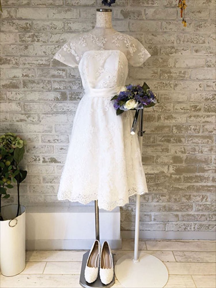 全品送料無料 ウェディングドレス 二次会ドレス クラシカル ミモレ丈 半袖 結婚式 二次会 披露宴 謝恩会 同窓会 ミモレ丈 膝丈 旅行撮影ドレス 花嫁 ウエディングドレス 結婚式 ホワイト Xs S M L Www Kisware Gr